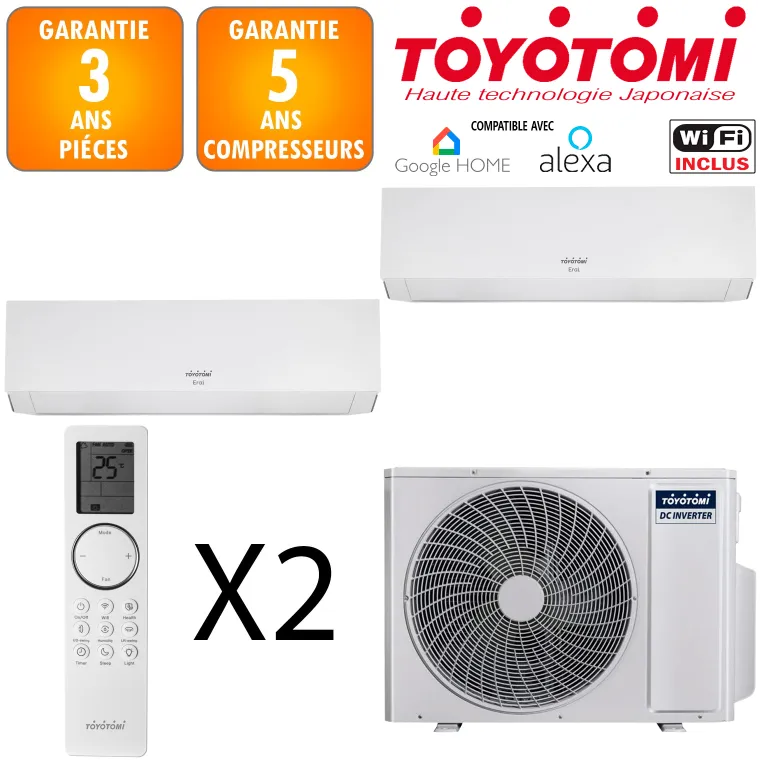 De plus, aussi bien imaginés pour les professionnels que pour les particuliers, les produits du fabricant Toyotomi sont considérés comme une valeur sûre à tous égards. Opter pour un climatiseur Toyotomi, c'est faire de son bien-être, celui de son entourage et/ou de sa clientèle une véritable priorité. Sélectionnez un équipement de qualité : sont les grands avantages du climatiseur Toyotomi Bi-split MULR32-24INV-3 + ERAI 9 + ERAI 12 Blanc. Organisez sans attendre la période estivale en vous assurant de rester à l'abri de la chaleur !